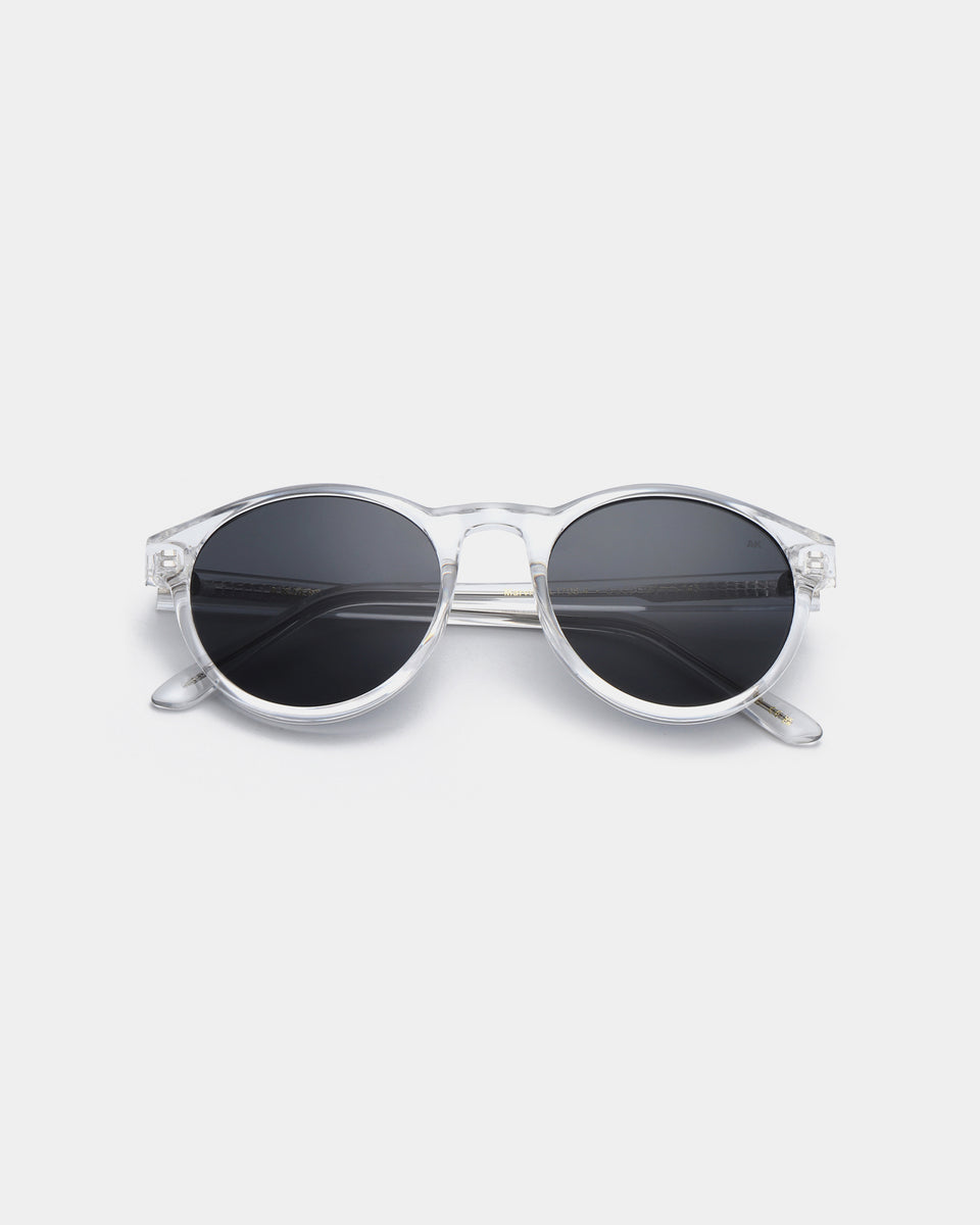 Solglasögon från A.Kjærbede med handgjorda bågar som är tillverkade av CP (Cellulosa Propionate). Skalmarna går att forma genom uppvärming då dom har en acetatenål i sig. Samtliga linser har UV400 skydd,